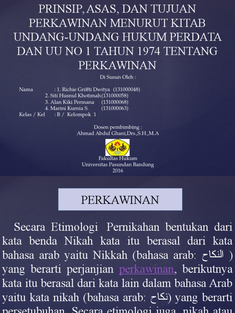 • Ppt Prinsip Asas Dan Tujuan Perkawinan Menurut Kitab Undang Undang Hukum Perdata Dan Uu No 1 Tahun 1974 Tentang Perkawinan