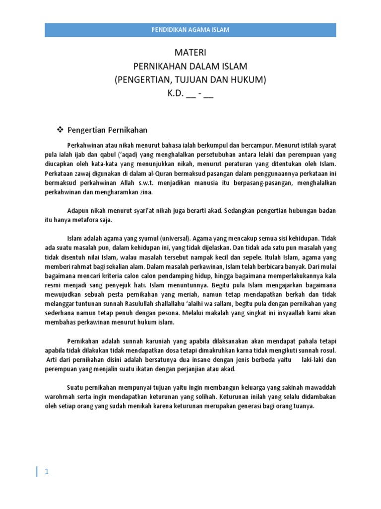 Materi Pernikahan Dalam Islam Pengertian Tujuan Dan Hukum K D Bukan Pernikahan Impian