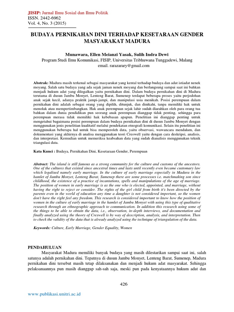 42455 Id Budaya Pernikahan Dini Terhadap Kesetaraan Gender Masyarakat Madura Pernikahan Lulu Tobing Dan Bani Mulia